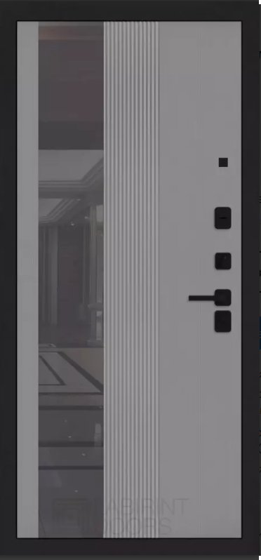 Покраска металла: Муар черный Фрезерованная МДФ панель 10 мм, цвет "Velutto Grigio" с патиной и вставкой из металла в цвет наличника (заподлицо)