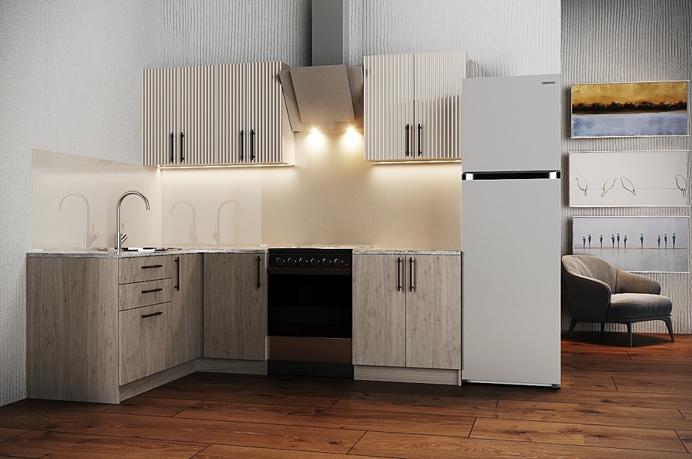 Ручки, столешница, стеновая панель, мойка, смеситель и бытовая техника продаются отдельно.